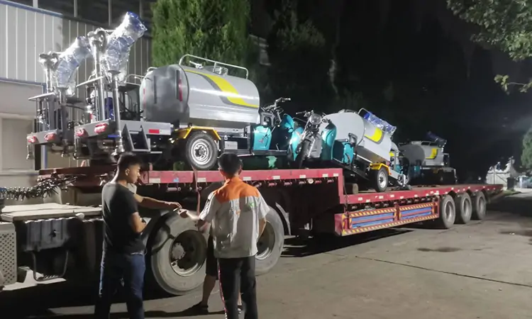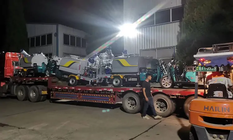 多日的加班加點終于在交貨日當(dāng)天完成了所有小型電動灑水車的安裝以及調(diào)試,經(jīng)過功能測試開始裝車發(fā)貨。此次發(fā)往某環(huán)衛(wèi)公司的這批小型電動灑水車配備了對沖,霧炮,高炮等功能,不僅可以用于日常的道路灑水作業(yè),也能用于霧炮降塵,園林澆水,地面高壓沖洗等工作,適用于小區(qū),社區(qū),學(xué)校,園區(qū),廠區(qū),鄉(xiāng)鎮(zhèn)等場景。