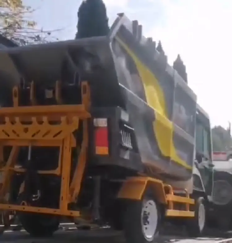 發往某環衛公司的電動垃圾清運車裝車完畢準備出發